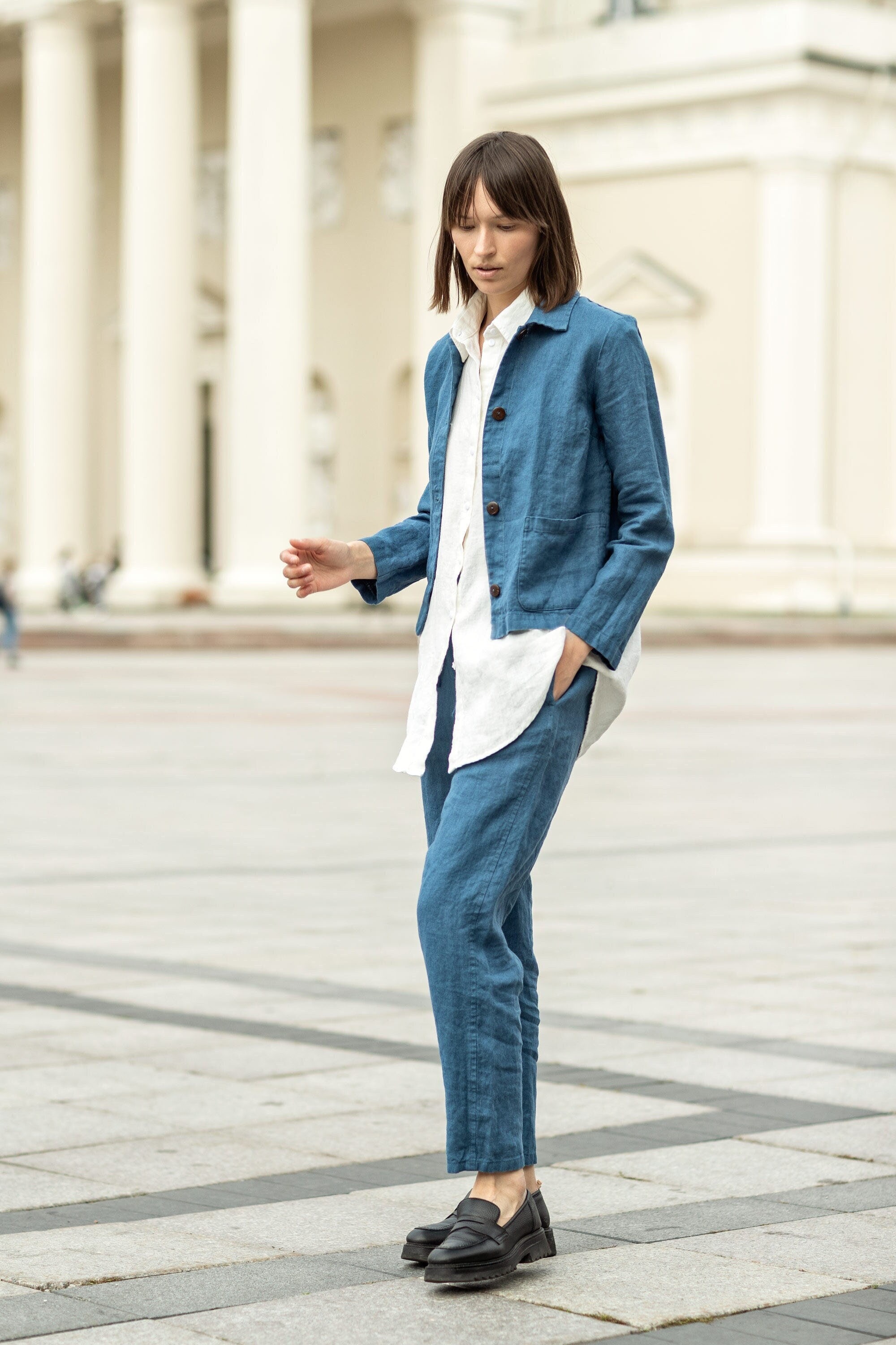 Cropped Linen Jacket With Buttons Short Linen Blazer With Etsy New Zealand