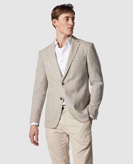 Natural Alessandro Linen Check Blazer Men S Tops Tarocash Nz